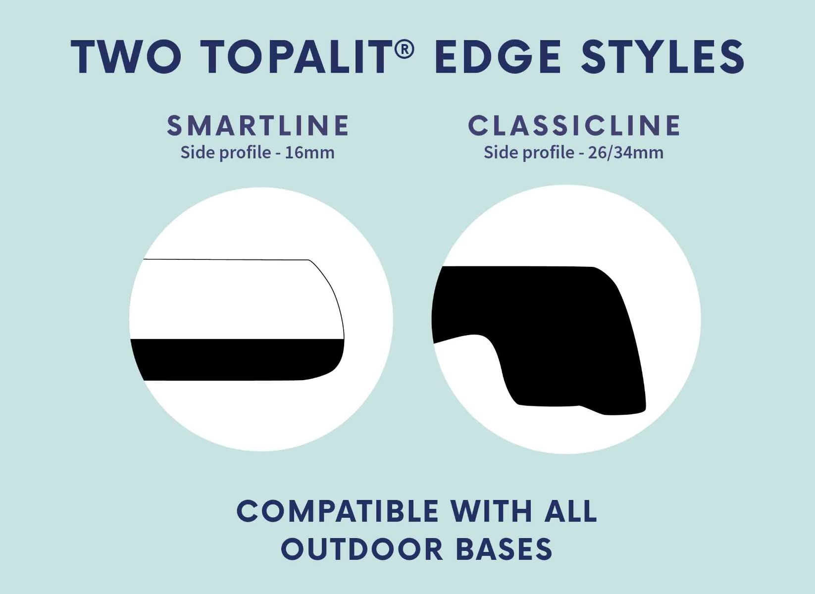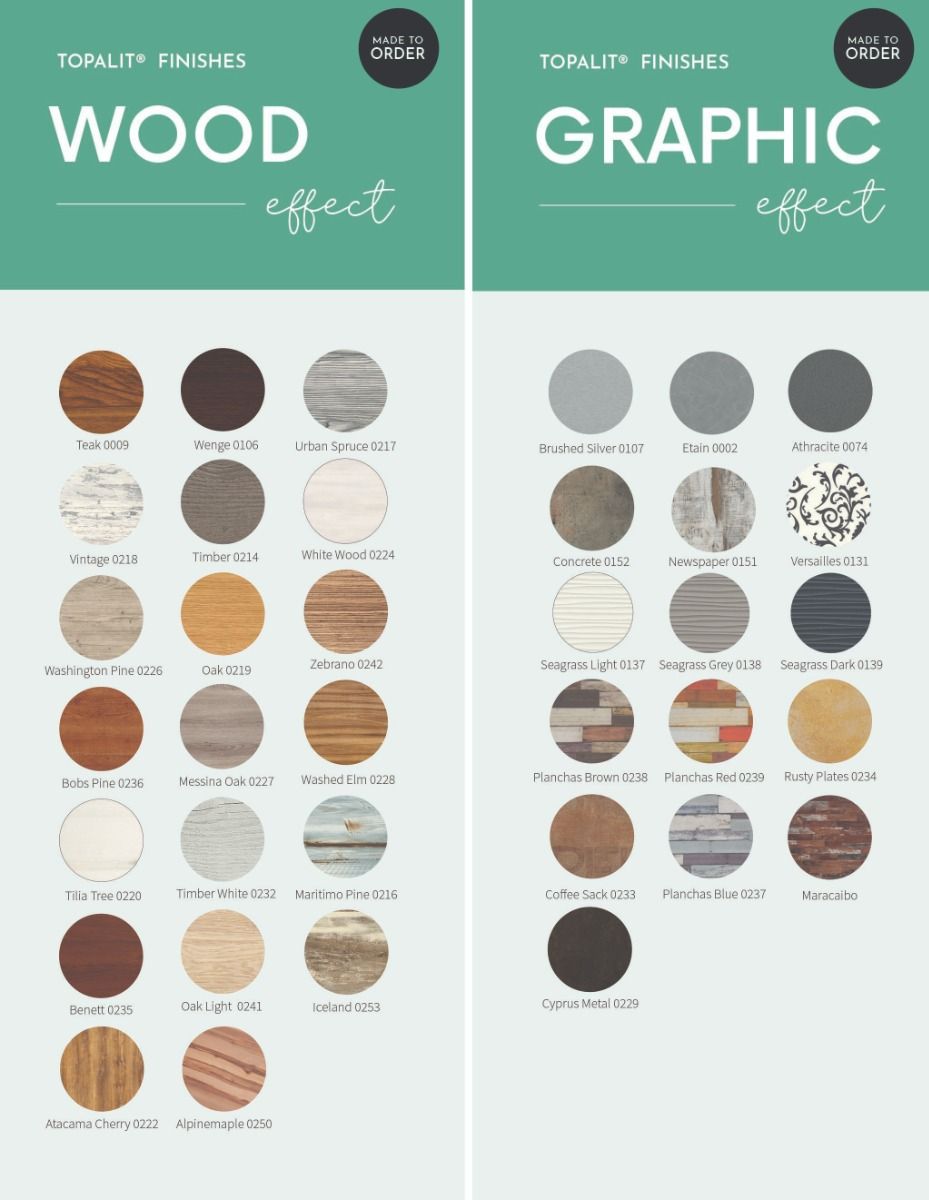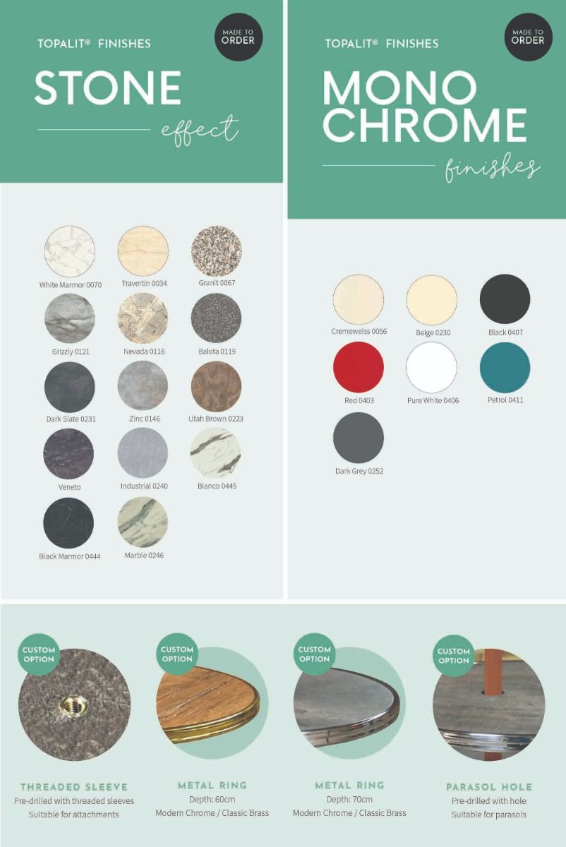 Topalit table tops are available in a variety of bespoke sizes, styles and finishes
